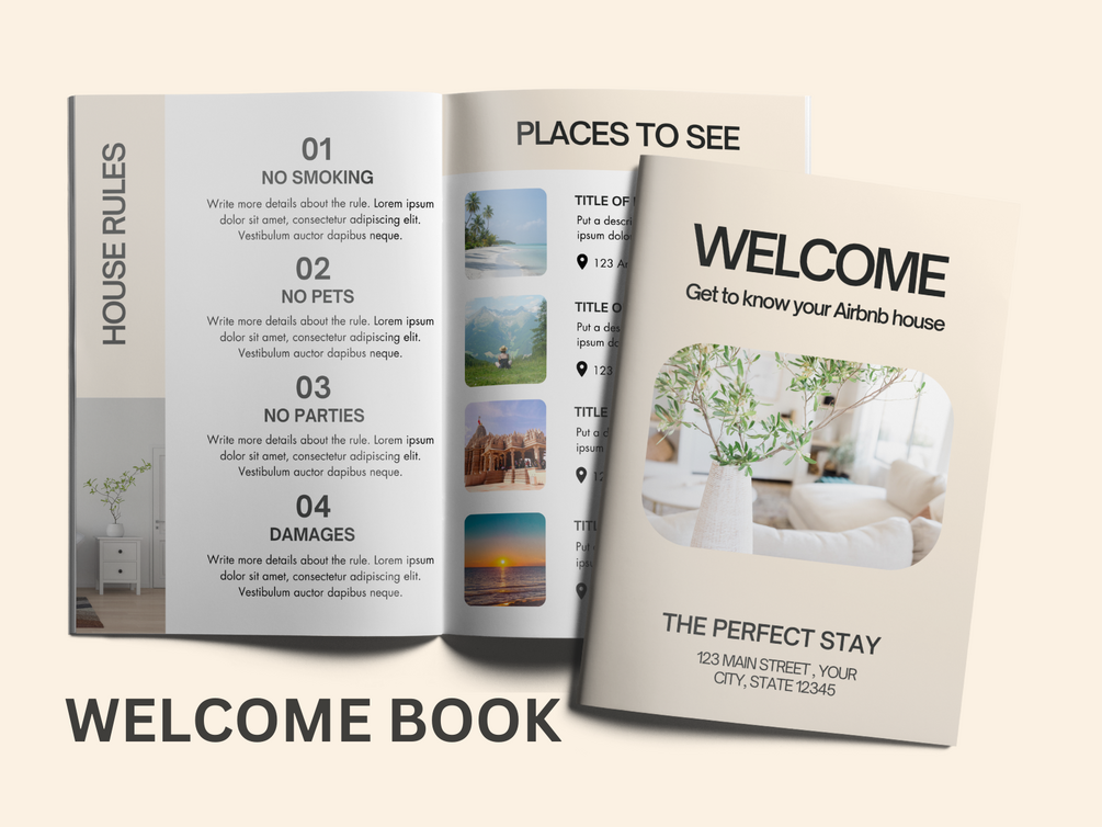 You can email the digital book before your guests check-in or place the printed book where they can see it as soon as they walk in. Get this welcome book to elevate your guest experience now!